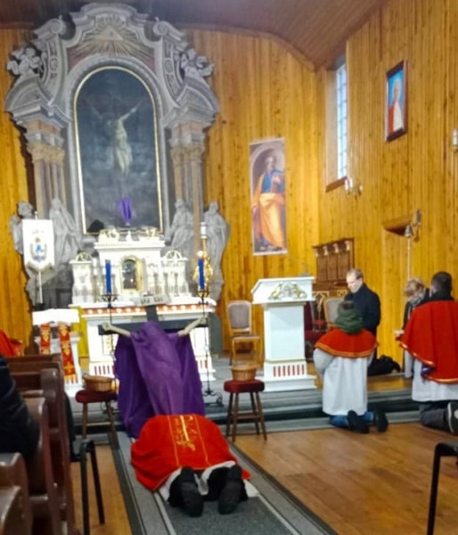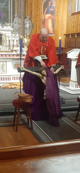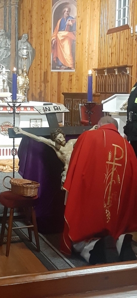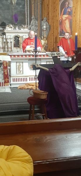Dzisiaj uświadamiamy sobie prawdę o obecności krzyża w naszym życiu. Krzyża człowiek nie zdejmie z serca, nie wyrwie go z sumienia. Krzyż zawsze na nas czeka. Jest częścią naszego życia, naszej codzienności. Dzisiaj adorując i całując krzyż pomyślmy o naszej grzeszności, ale też pomyślmy o cierpieniu tak wielu ludzi. Pomyślmy o prześladowanych chrześcijanach na całym świecie. Nie bójmy się krzyża. Nie usuwajmy go z przestrzeni naszego życia, z przestrzeni życia publicznego. Niech krzyż Chrystusa będzie punktem odniesienia dla wielu naszych spraw, niech będzie drogowskazem jak mamy w życiu postępować.